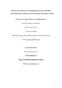 The multinationality and performance relationship: revisiting the literature and exploring the implications.