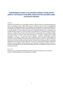 Understanding the intention to buy secondhand clothing on sharing economy platforms: The influence of sustainability, distance from the consumption system, and economic motivations.
