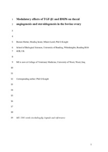Mattar, D., Samir, M., Laird, M. and Knight, P. G. ORCID: https://orcid.org/0000-0003-0300-1554 (2020) Modulatory effects of TGF-β1 and BMP6 on thecal angiogenesis and steroidogenesis in the bovine ovary. Reproduction, 159 (4). pp. 397-408. ISSN 1470-1626 doi: 10.1530/REP-19-0311