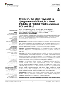 Myricetin, the main flavonoid in Syzygium cumini leaf, is a novel inhibitor of platelet thiol isomerases PDI and ERp5
