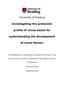 Scollo, E. (2019) Investigating the proteomic profile of cocoa beans for understanding the development of cocoa flavour. PhD thesis, University of Reading. doi: 10.48683/1926.00088807