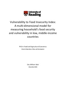Ibok, O. W. (2019) Vulnerability to food insecurity index: a multi-dimensional model for measuring household's food security and vulnerability in low, middle-income countries. PhD thesis, University of Reading. doi: 10.48683/1926.00088808