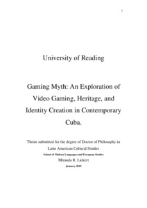 Lickert, M. R. (2019) Gaming myth: an exploration of video gaming, heritage, and identity creation in contemporary Cuba. PhD thesis, University of Reading. doi: 10.48683/1926.00088829