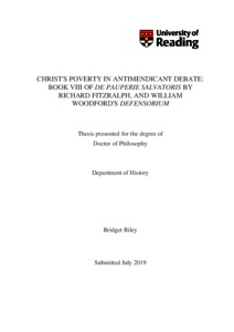 Riley, B. (2019) Christ's poverty in antimendicant debate: book VIII of De Pauperie Salvatoris by Richard FitzRalph, and William Woodford's Defensorium. PhD thesis, University of Reading. doi: 10.48683/1926.00088832