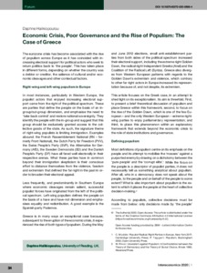 Halikiopoulou, D. (2020) Economic crisis, poor governance and the rise of populism: the case of Greece. Intereconomics: Review of European Economic Policy, 55 (1). pp. 34-37. ISSN 1613-964X doi: 10.1007/s10272-020-0866-4