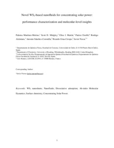 (21) Navas, J.; Martinez-Merino, P.; Sanchez-Coronilla, A.; Gallardo, J. J.; Alcantara, R.; Martin, E. I.; Pinero, J. C.; Leon, J. R.; Aguilar, T.; Toledo, J. H.; Fernandez-Lorenzo, C. MoS2 Nanosheets vs. Nanowires: Preparation and a Theoretical Study of Highly Stable and Efficient Nanofluids for Concentrating Solar Power. J. Mater. Chem. A 2018, 6 (30), 14919-14929, DOI: 10.1039/c8ta03817a.