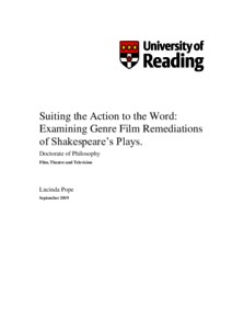 Pope, L. (2020) Suiting the action to the word: examining genre film remediations of Shakespeare’s plays. PhD thesis, University of Reading. doi: 10.48683/1926.00088955