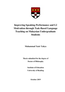 Yahya, M. Y. (2019) Improving speaking performance and L2 motivation through task-based language teaching on Malaysian undergraduate students. PhD thesis, University of Reading. doi: 10.48683/1926.00089016