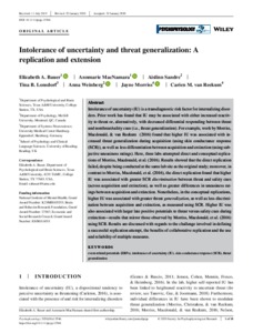 Intolerance of uncertainty and threat generalization: a replication and extension.