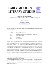 Newton, H. (2020) ‘Out of bed, but not yet abroad’: spatial experiences of recovery from illness in Early Modern England. Early Modern Literary Studies (29). ISSN 1201-2459 (Special Issue: Door Bolts, Thresholds, and Peep-Holes: Liminality and Domestic Spaces in Early Modern England. Edited by Robert Daniel and Iman Sheeha)