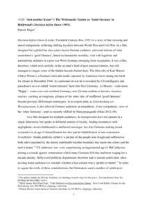 A film-historical account of the making and reception of the Twentieth Century-Fox film 'Decision before Dawn' which portrayed the real-life story of a German line-crosser who volunteered to spy for US military intelligence in the final stages of the war. The piece analyses the 'good German' characters in the film, but also the political resistance which came from the US State Department, the Adenauer and Bavarian state governments, at a sensitive time of West German rearmament.