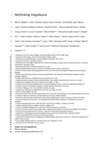 Moleon, M., Sánchez-Zapata, J. A., Donázar, J. A., Revilla, E., Martín-López, B., Gutiérrez-Cánovas, C., Getz, W. M., Morales-Reyes, Z., Campos-Arceiz, A., Crowder, L. B., Galetti, M., Gonzalez-Suarez, M. ORCID: https://orcid.org/0000-0001-5069-8900, He, F., Jordano, P., Lewinson, R., Naidoo, R., Owen-Smith, N., Selva, N., Svenning, J. C., Tella, J. L., Zarfl, C., Jähnig, S. C., Hayward, M., Faurby, S., Garcia, N., Barnosky, A. D. and Tockner, K. (2020) Rethinking megafauna. Proceedings of the Royal Society B-Biological Sciences, 287 (1922). 20192643. ISSN 1471-2954 doi: 10.1098/rspb.2019.2643