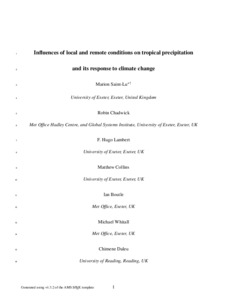 Saint-Lu, M., Chadwick, R., Lambert, F. H., Collins, M., Boutle, I., Whitall, M. and Daleu, C. ORCID: https://orcid.org/0000-0003-2075-4902 (2020) Influences of local and remote conditions on tropical precipitation and its response to climate change. Journal of Climate, 33 (10). pp. 4045-4063. ISSN 1520-0442 doi: 10.1175/JCLI-D-19-0450.1