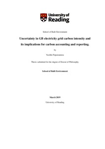 Papaioannou, V. (2020) Uncertainty in GB electricity grid carbon intensity and its implications for carbon accounting and reporting. PhD thesis, University of Reading. doi: 10.48683/1926.00089320