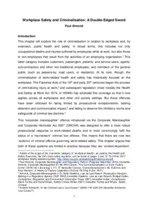 The chapter sets out the two key means through which the criminal law imposes liability in cases of work-related safety violations – health and safety offences under the HSWA 1974, and the corporate manslaughter offence under the CMCHA 2007. In each case, the doctrinal and empirical factors which establish the ‘need’ for these offences are sketched, along with the broader political, social and normative rationales that led to their introduction. The chapter sets out the specific difficulties that each of these models of criminalisation has encountered in practice, showing how these difficulties relate to the notion of context-dependency in definition and application, and to the desire to achieve policy-oriented ends via criminalisation. The chapter draws on regulatory theory and analysis to demonstrate the contribution that criminalisation makes to the regulation of workplace safety. It argues that context-dependency is both a necessary requirement and a limiting factor in terms of impact.
