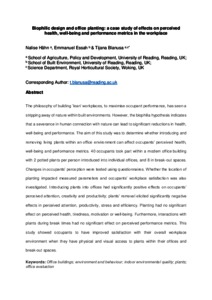 Biophilic design and office planting: a case study of effects on perceived health, well-being and performance metrics in the workplace