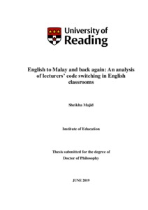 Majid, S. (2020) English to Malay and back again: an analysis of lecturers' code switching in English classrooms. PhD thesis, University of Reading. doi: 10.48683/1926.00089400