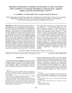 Splanchnic metabolism of nutrients and hormones in steers fed alfalfa under conditions of increased absorption of ammonia and L-arginine supply across the portal-drained viscera.