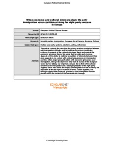 When economic and cultural interests align: the anti- immigration voter coalitions driving far right party success in Europe