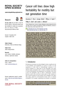 Tumour evolution depends on heritable differences between cells in traits affecting cell survival or replication. It is well established that cancer cells are genetically and phenotypically heterogeneous; however, the extent to which this phenotypic variation is heritable is far less well explored. Here, we estimate the broad-sense heritability (H2) of two cell traits related to cancer hallmarks––cell motility and generation time––within populations of four cancer cell lines in vitro and find that motility is strongly heritable. This heritability is stable across multiple cell generations, with heritability values at the high end of those measured for a range of traits in natural populations of animals or plants. These findings confirm a central assumption of cancer evolution, provide a first quantification of the evolvability of key traits in cancer cells and indicate that there is ample raw material for experimental evolution in cancer cell lines. Generation time, a trait directly affecting cell fitness, shows substantially lower values of heritability than cell speed, consistent with its having been under directional selection removing heritable variation.