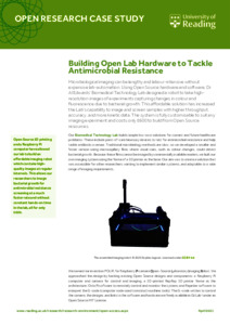 Microbiological imaging can be lengthy and labour-intensive without expensive lab-automation. Using Open Source hardware and software, Dr Al Edwards’ Biomedical Technology Lab designed a robot to take high-resolution images of experiments capturing changes in colour and fluorescence due to bacterial growth. This affordable solution has increased the Lab’s capability to image and screen samples with higher throughput, accuracy, and more kinetic data. The system is fully customisable to suit any imaging experiment and costs only £600 to build from Open Source resources.