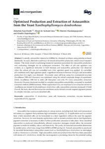 Optimised production and extraction of astaxanthin from the yeast Xanthophyllomyces dendrorhous.