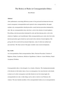 Hooker, B. (2020) The role(s) of rules in consequentialist ethics. In: Portmore, D. (ed.) Oxford Handbook of Consequentialism. Oxford University Press, New York.