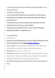 Maher, T. and Clegg, M. E. (2021) A systematic review and meta-analysis of medium-chain triglycerides effects on acute satiety and food intake. Critical Reviews in Food Science and Nutrition, 61 (4). pp. 636-648. ISSN 1040-8398 doi: 10.1080/10408398.2020.1742654