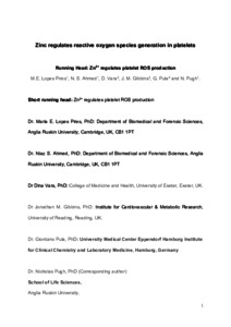 Uncontrolled Keywords Zinc, platelets, ROS, signal transduction, thrombosis