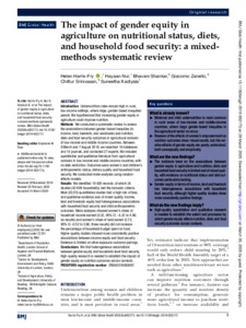 The impact of gender equity in agriculture on nutritional status, diets, and household food security: a mixed-methods systematic review.