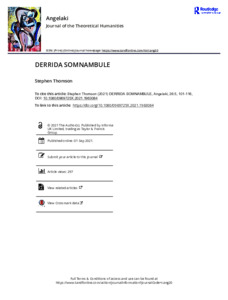 This article traces the appearance of the rhetoric of somnambulism in Derrida’s writing, arguing that it undergoes a late (and subtle, but important) shift, germane to the concerns of the seminars on the beast and the sovereign. Until around 1997, all instances of the term position sleepwalking in the third person, and seem to point at it as a property of an other in which the speaker would have no part. This gesture risks short-circuiting the ways in which Derrida otherwise complicates the dialectic of sleep and waking, underwriting a vigilance that would be rather classic and assured, and indeed constituting a moment of mastery at odds with the decentring impetus of deconstruction. The turn that leads to Derrida saying ‘je somnambule’, in the first person, in Fichus marks an acknowledgement of this problem and an attempt to negotiate it. What is at stake is the problematic mastery of the critic of mastery; a problem which, I contend, becomes all the more important as critical theory confronts a rise in authoritarian thinking. Examining the theatre of prize- and thanks-giving in Fichus, alongside similar concerns in Genèses, généalogies, genres et le génie, and the problems of intellectual celebrity in La contre-allée, provides a space for meditating on the constitution of critical authority, and most especially the need to avoid meeting urgency with a critical state of exception that caricatures the power it confronts.