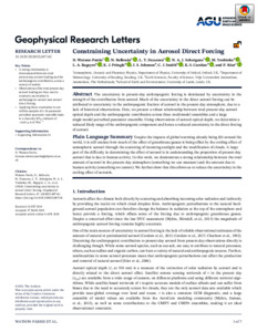 The uncertainty in present-day anthropogenic forcing is dominated by uncertainty in the strength of the contribution from aerosol. Much of the uncertainty in the direct aerosol forcing can be attributed to uncertainty in the anthropogenic fraction of aerosol in the present-day atmosphere, due to a lack of historical observations. Here we present a robust relationship between total present-day aerosol optical depth and the anthropogenic contribution across three multi-model ensembles and a large single-model perturbed parameter ensemble. Using observations of aerosol optical depth, we determine a reduced likely range of the anthropogenic component and hence a reduced uncertainty in the direct forcing of aerosol.