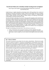 With the withdrawal of the UK from the European Union and increasing pressures from climate change, English arable farming resilience is in a fragile position. Most Brexit impact assessments have focused on quantitative analysis, however here we take a qualitative approach to assess how future trade agreements could impact the resilience of the UK arable farming system. We discuss the main strategies that are currently taken by English arable farmers to improve resilience using evidence from a large‐scale survey in the East of England. Using information from a multi‐stakeholder workshop, we look at arable farming resilience in three forms characteristic of the farming system; namely, robustness, adaptability and transformability and how these relate to and are potentially influenced by three different Brexit trade scenarios. Stakeholders’ recommendations suggest that a ‘hard’ no‐deal scenario will require policies for social protection of farmers in more vulnerable rural areas, while in a ‘softer’ scenario a ‘public money for public goods’ policy could be implemented effectively by learning from previous environmental schemes. Nevertheless, resilience can be enhanced only by addressing structural and policy issues, such as generational renewal, advice and extension, tenancy duration limits and smarter PPP regulations, regardless of what post‐Brexit deal with the EU finally emerges.