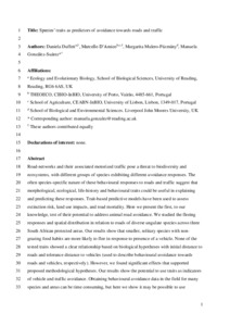 Species’ traits as predictors of avoidance towards roads and traffic