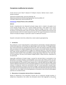 Rainfall is hypothesised to be influenced by droplet charge, which is related to the global circuit current flowing through clouds. This is tested through examining a major global circuit current increase following release of artificial radioactivity. Significant changes occurred in daily rainfall distribution in the Shetland Islands, away from pollution. Daily rainfall changed by 24%, and local cloud optically thickened, within the nuclear weapons test period. This supports expectations of electrically induced microphysical changes in liquid water clouds from additional ionisation.