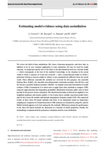 We review the field of data assimilation (DA) from a Bayesian perspective and show that, in addition to its by now common application to state estimation, DA may be used for model selection. An important special case of the latter is the discrimination between a factual model–which corresponds, to the best of the modeller's knowledge, to the situation in the actual world in which a sequence of events has occurred–and a counterfactual model, in which a particular forcing or process might be absent or just quantitatively different from the actual world. Three different ensemble‐DA methods are reviewed for this purpose: the ensemble Kalman filter (EnKF), the ensemble four‐dimensional variational smoother (En‐4D‐Var), and the iterative ensemble Kalman smoother (IEnKS). An original contextual formulation of model evidence (CME) is introduced. It is shown how to apply these three methods to compute CME, using the approximated time‐dependent probability distribution functions (pdfs) each of them provide in the process of state estimation. The theoretical formulae so derived are applied to two simplified nonlinear and chaotic models: (i) the Lorenz three‐variable convection model (L63), and (ii) the Lorenz 40‐variable midlatitude atmospheric dynamics model (L95). The numerical results of these three DA‐based methods and those of an integration based on importance sampling are compared. It is found that better CME estimates are obtained by using DA, and the IEnKS method appears to be best among the DA methods. Differences among the performance of the three DA‐based methods are discussed as a function of model properties. Finally, the methodology is implemented for parameter estimation and for event attribution.