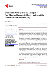 El Morally, R. (2020) Women in development: a critique of neo-classical economic theory as one of the causes for gender inequality. Open Journal of Political Science, 10 (1). pp. 1-14. ISSN 2164-0505 doi: 10.4236/ojps.2020.101001