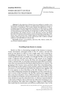 Uncontrolled Keywords Beckett, intermediality, television, film, theatre, media, drama, Britain, Ireland, audience