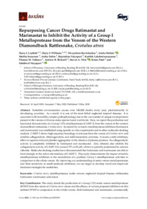 Repurposing cancer drugs, batimastat and marimastat, to inhibit the activity of a group I metalloprotease from the venom of the Western Diamondback rattlesnake, Crotalus atrox.