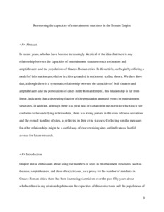 Hanson, J. and Ortman, S. (2020) Reassessing the capacities of entertainment structures in the Roman Empire. American Journal of Archaeology, 124 (3). pp. 417-440. ISSN 0002-9114 doi: 10.3764/aja.124.3.0417