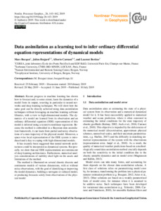 Bocquet, M., Brajard, J., Carrassi, A. ORCID: https://orcid.org/0000-0003-0722-5600 and Bertino, L. (2019) Data assimilation as a learning tool to infer ordinary differential equation representations of dynamical models. Nonlinear Processes in Geophysics, 26 (3). pp. 143-162. ISSN 1607-7946 doi: 10.5194/npg-26-143-2019