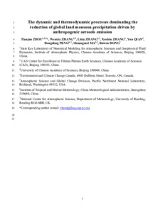 Zhou, T., Zhang, W., Zhang, L., Zhang, X., Qian, Y., Peng, D., Ma, S. and Dong, B. ORCID: https://orcid.org/0000-0003-0809-7911 (2020) The dynamic and thermodynamic processes dominating the reduction of global land monsoon precipitation driven by anthropogenic aerosols emission. Science China Earth Sciences, 63 (7). pp. 919-933. ISSN 1869-1897 doi: 10.1007/s11430-019-9613-9