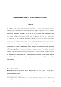 Moments-based spillovers across gold and oil markets.