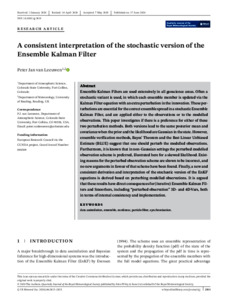 van Leeuwen, P. J. (2020) A consistent interpretation of the stochastic version of the Ensemble Kalman Filter. Quarterly Journal of the Royal Meteorological Society, 146 (731). pp. 2815-2825. ISSN 1477-870X doi: 10.1002/qj.3819