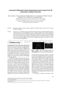 Vandaele, R., Lallemand, F., Martineve, P., Gulyban, A., Jodogne, S., Geurts, P., Geurts, P. and Marée, R. (2017) Automated multimodal volume registration based on supervised 3D anatomical landmark detection. In: Proceedings of the 12th International Joint Conference on Computer Vision, Imaging and Computer Graphics Theory and Applications, 27-1 Feb 2017, Porto, Portugal, pp. 333-340. (Volume 5)