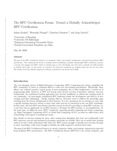 Kunkel, J., Filinger, W., Meesters, C. and Gerbes, A. (2020) The HPC certification forum: toward a globally acknowledged HPC certification. Computing in Science and Engineering, 22 (4). ISSN 1521-9615 doi: 10.1109/MCSE.2020.2996073