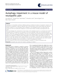 Berliocchi, L., Russo, R., Maiarù, M. ORCID: https://orcid.org/0000-0003-0927-6567, Levato, A., Bagetta, G. and Corasaniti, M. T. (2011) Autophagy impairment in a mouse model of neuropathic pain. Molecular pain, 7. 83. ISSN 1744-8069 doi: 10.1186/1744-8069-7-83
