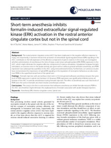 Short-term anesthesia inhibits formalin-induced extracellular signal-regulated kinase (ERK) activation in the rostral anterior cingulate cortex but not in the spinal cord.