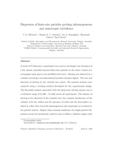 Bourgoin, M., Qureshi, N. M., Baudet, C., Cartellier, A., Gagne, C., 2011. Turbulent transport of finite sized material particles. In: Journal of Physics: Conference Series. Vol. 318. IOP Publishing, p. 012005.