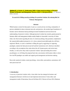 In search of a fitting moral psychology for practical wisdom: the missing link for virtuous management.